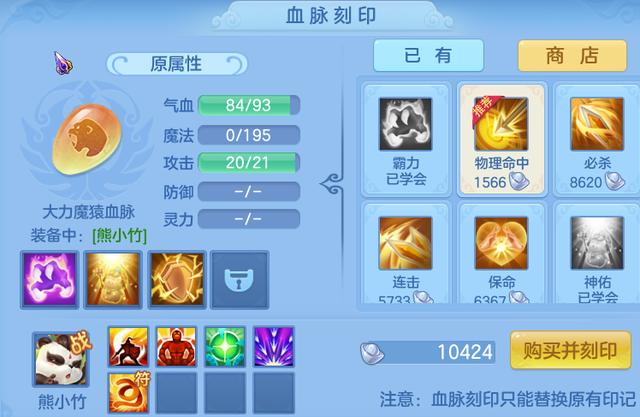 在人物等级达到65级后,系统会赠送一个大力魔猿血脉,另外血脉也可以在交易中心中购买。血脉主要分为天赋印记和本能印记。天赋印记是宠物血脉搭配的基础,法术的宠物可以选择聚灵,物理输出宠物可以选择霸力。因为自由打书的存在以及加点的影响,像耐攻、耐法这类型的宠物既可以选择输出型天赋印记,也可以选择携带"钢筋铁骨"、"澎湃之躯"这样的天赋印记来提高生存能力。玩家也可以按照宠物的技能和属性来选择适合的血脉。