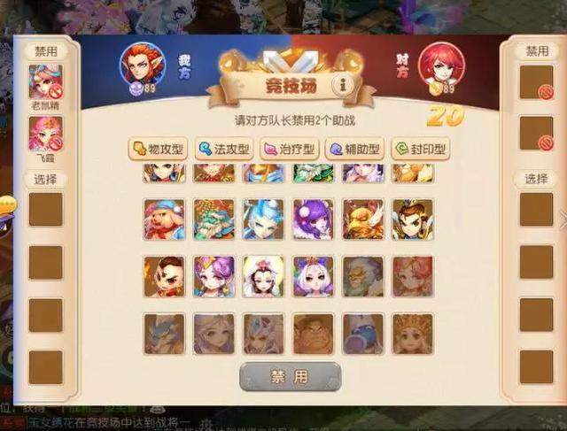 禁用原因:因为辅助助战输出能力不足,对于辅助门派来说,最关键的往往是输出助战的选择,一个常用的,好用的输出助战对辅助门派来说至关重要。但是因为输出助战数目众多,那么哪些助战是对手常用的呢?这里需要考验的就是你对对手的了解了,对于经常打竞技场的宝宝,想必对常见对手的常用输出助战也有一定了解,可以通过禁用和抢选来创造优势。