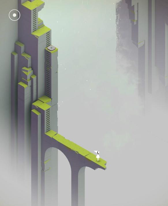 纪念碑谷《纪念碑谷》是一款解密类的游戏,2014年发行。玩家在游戏中通过探索隐藏密道、发现视力反差以及躲避乌鸦人等等操作来帮助主人公艾达走出纪念碑的迷宫,直至走到终点。该作一经推出就因为艺术感极强的画面和诗意的配乐受到关注,加上玩法的独特视角,获得了至少14个奖项,包括最佳移动游戏奖、苹果公司颁发的设计大奖,以及iPad年度最佳游戏等。