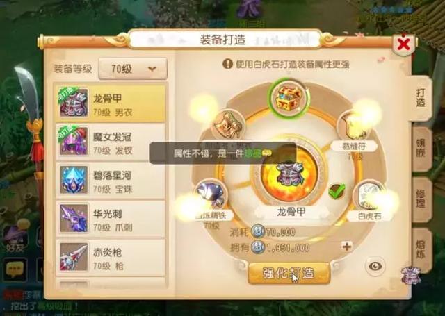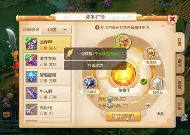 老规矩,号主已经准备好打造70级衣服所需要的制造书、精铁、裁缝符和白虎石,话不多说,直接开始强化打造。