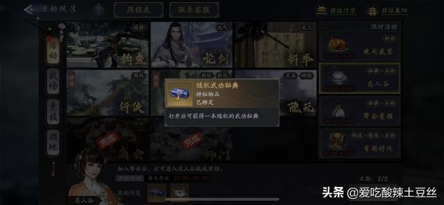 晚上8点到9点的BOSS也是要做,如果出一本奥义价值上万银,概率获得