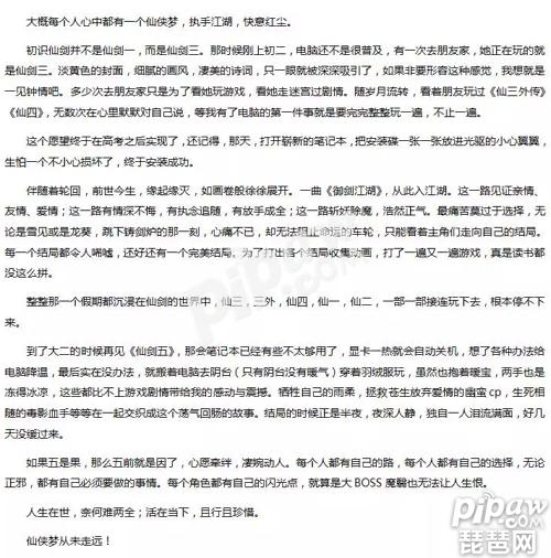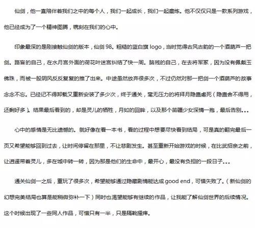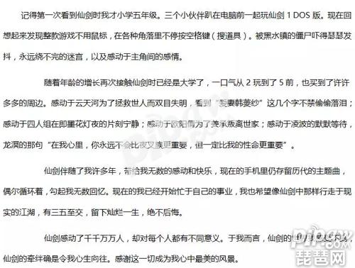 以上就是《仙剑五》手游官方征文所选出的优秀作品,相信还有很多投稿玩家也书写了自己与仙剑的“不解之缘”。虽然没有得奖,但小编认为所有坚持仙剑情怀的籼米,都是仙剑系列成长与提升的见证人。