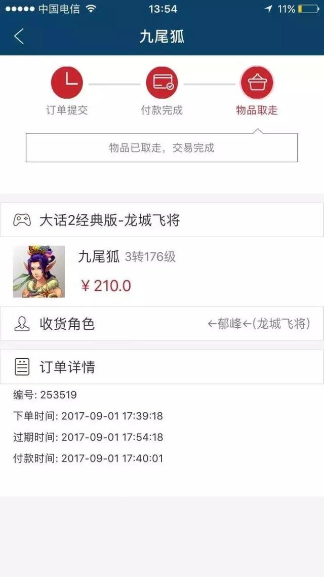 一个月前,我在藏宝阁花210元买了一个号,到十一这天正好一个月了,没想到这号让我在今天得了一只神兽年,然后又给了个龙骨,瞬间幸福感满满!