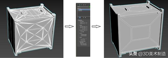 使用中多边形替换高多边形空对象,得到一个中多边形对象,但线框完全不适合进一步的工作。这时可以在3ds Max中使用“优化修改器”,手动调整修改器无法自动修复的所有内容,对模型的所有元素一一完成。