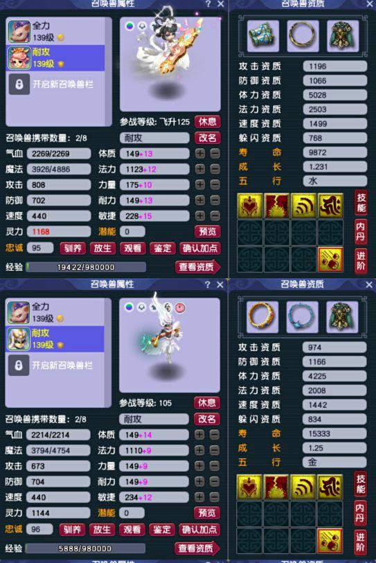 普通装备配置了5件120级50敏以上动物套,5件高敏10段衣服,5把高伤高敏武器,敏捷动物套为爆属性8段一二档。每个号配备5特技+1愤怒(晶清,罗汉,四海,起死回生,诅咒之伤)。法宝齐全,配3属性坐骑装饰,配5套豪宅,辅助技能优秀。