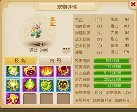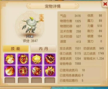完美的资质,对于这只宠物,马男表示,再来几个格子吧!!!让它更完美!!!