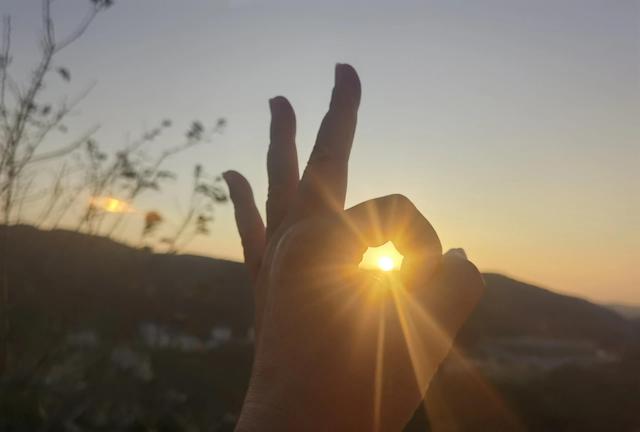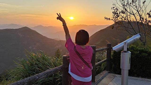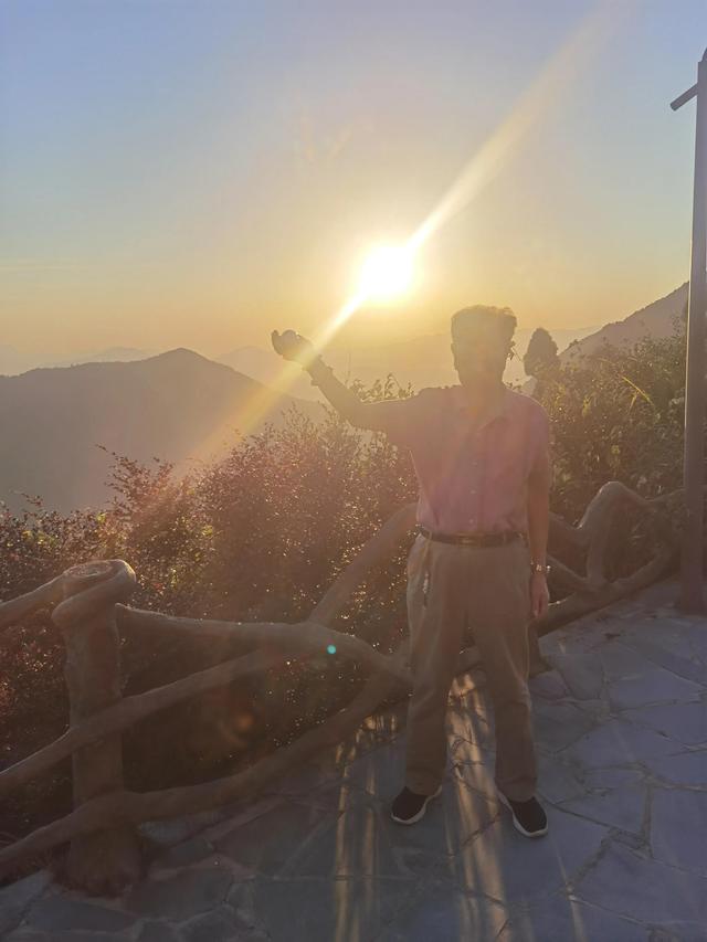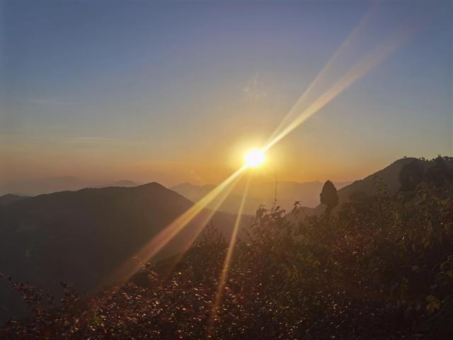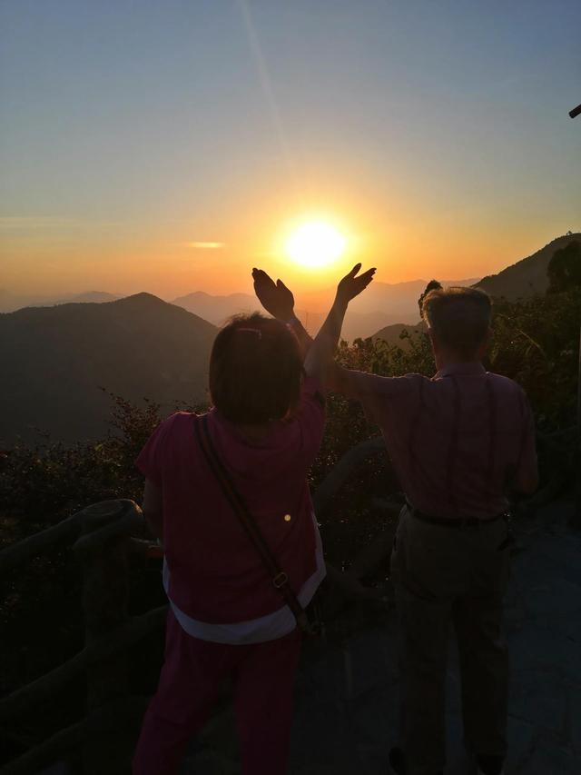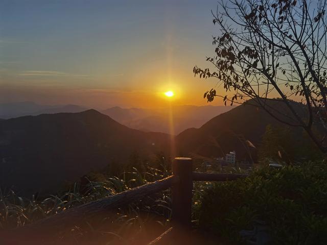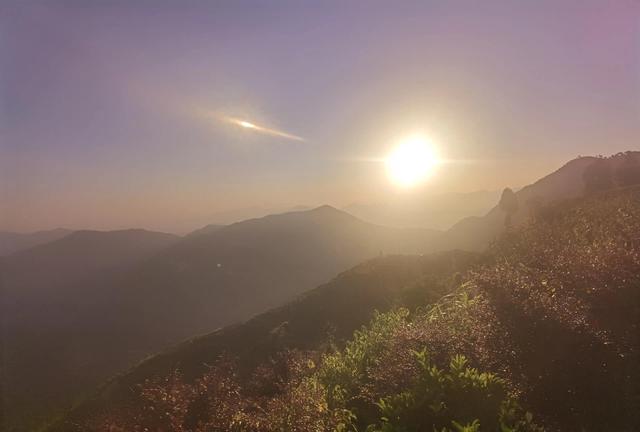 光明顶的日出美不胜收,5点就气喘吁吁的往山顶爬,真的是老了,短短的路,爬了近半小时…好在太阳的光芒,治愈了心里小小的失落:晨曦初照,像含羞的少⼥,若隐若现,渐渐地东边露出了⼀⽚红霞,接着红霞的范围越来越⼤,越来越红,橙红色的云层隐藏的金光淡了下来,不到两分钟,太阳就一下子跳将出来,放射出夺目耀眼的光彩。
