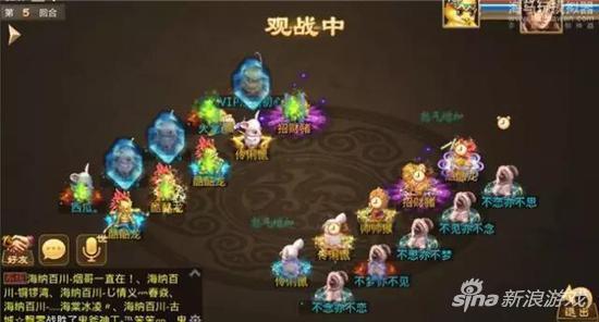 至于观战方(不队)的阵容,则是比较个性的五行四体队,队伍由体金、体木、体水、体火、敏土组成。这个队伍配置,小编可以说是闻所未闻,见所未见啊!!!
