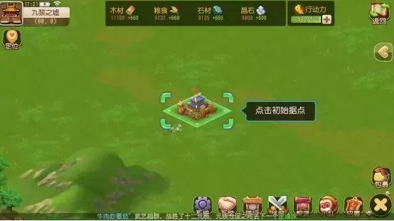 5000粮草,5000木材和5000石材,玩家每日12点获得100行动力,行动力将用于以下行动: