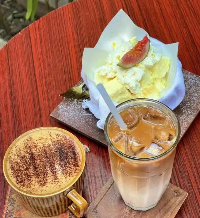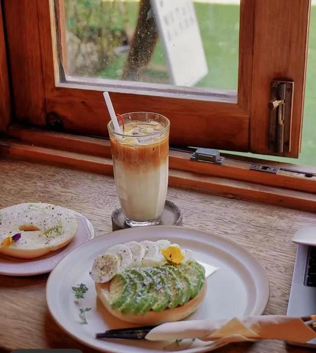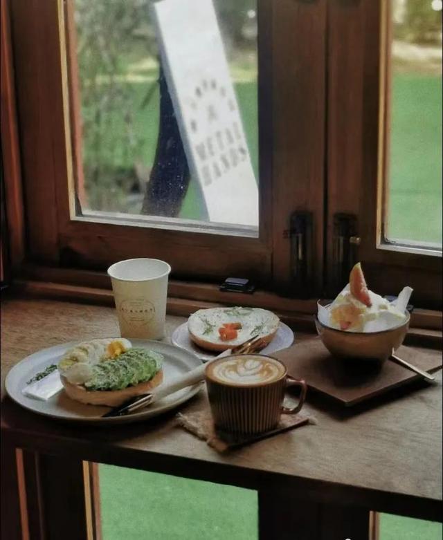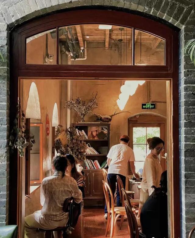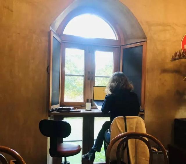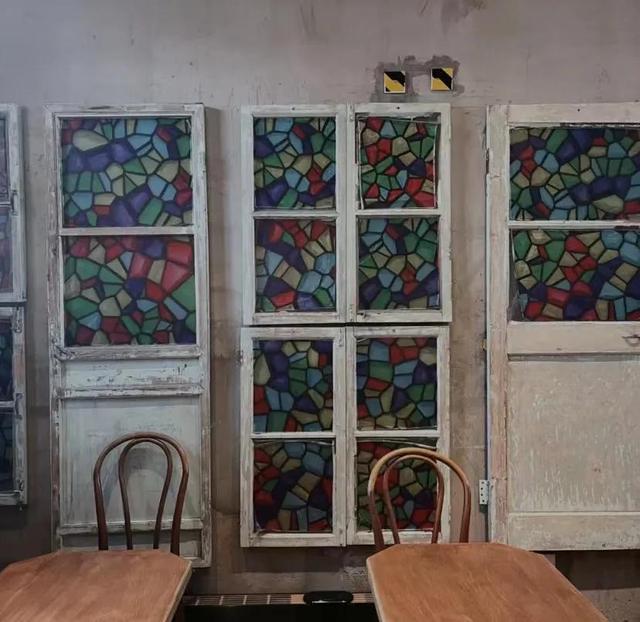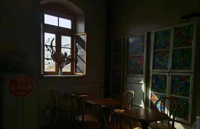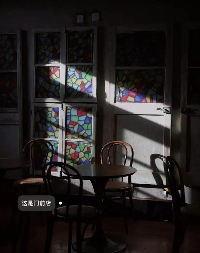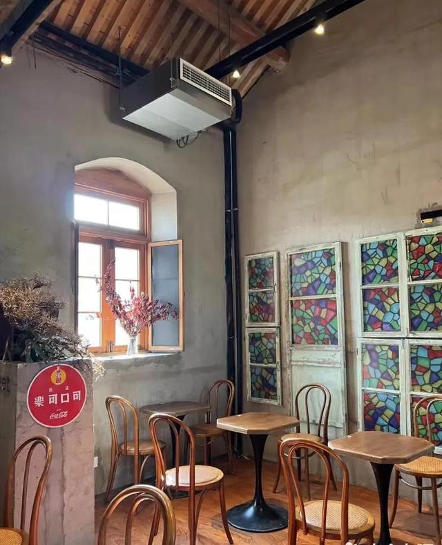 建筑有种复古风,很适合拍一些复古或者法式的照片。咖啡厅外面还有一个小院子,种着几棵海棠还有不怕人的猫,人不多在咖啡厅发呆一下午也是很幸福。一楼的窗户可以推开 感觉像在欧洲家里的后花园室外有桌椅可以让你沐浴阳光,值得一提的是要走的时候偶然发现门外的一颗树刚好变黄。配上复古中式美式融合的二层楼人少还出片。拱形的飘窗与彩色玻璃,上下两层的空间,都很简约。