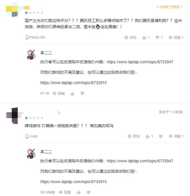 结合上述数据来看,腾讯手游氪金才是王道?在不少玩家的印象中,看到腾讯游戏似乎就意味着氪金,而每当腾讯相关游戏上线时,评论区“骗氪”的字眼必然是少不了。以上个月中旬上线预计月收达到10亿人民币的腾讯手游《龙族幻想》为例,在最近的taptap平台该游戏评价中,最低的评价一星占据了大多数,而在这些评价中,因为氪金系统所导致的这样差评又占据了大多数。