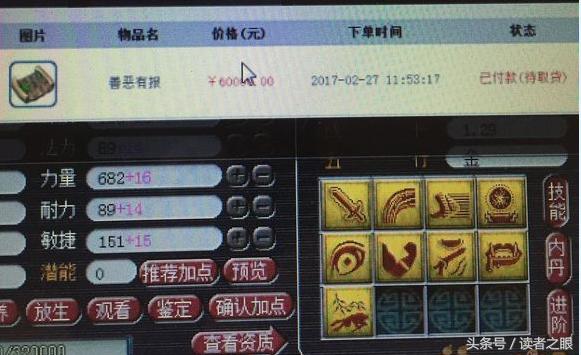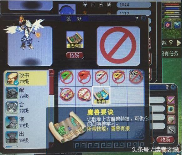 到点了,朋友们,我来了,今天依然准时准点更新,做一个合格负责的小编。我其实挺喜欢看评论内容的,有的时候看见大家的评论,我自己都能乐一会,感觉有的说的特别逗,就是哪怕是挑毛病的,我也喜欢认真的回答,我认为是和大家的交流过程,一个相互了解的过程,慢慢的相处,我是真心拿各位当朋友相处的。下面我们来聊聊这个善恶兽决,这个兽决是非常的少的,同样也是一个很关键的技能,善恶的宝宝,原来在我的印象中就是律法,一般也都是拿律法进行合成,但是这个直接买的兽决非常的珍贵,而且还非常的贵,6万一本,还真的是奢侈哦,这个69的大爷还真的土豪哦,直接打在了雷鸟人身上,我真的有点晕眩哦(我本来就头疼,哈哈)。在看见这个图片的时候,我的第一想法就是赔不赔,6万的兽决打到雷鸟人身上,先考虑一下,雷鸟人是否比6万贵,还有一点就是善恶兽决上去之后,本身价值就有所下降了,变的不是那么珍贵了,而且还是在雷鸟人身上,都会以为是合的,还真的是土豪的世界,我们不懂哦。不过这只9技能雷鸟人还真的很极品的,攻资1600,但还有感觉有点亏哦。