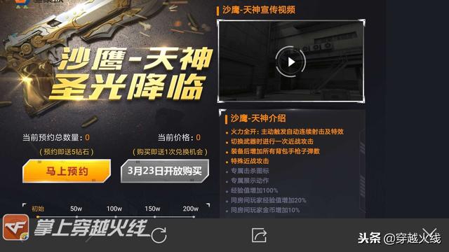 天神是端游继修罗以后的第二把英雄级副武器,但是手游却排到了后面。不过作为老牌的英雄级手枪,天神的火力全开技能让它在副武器家族名声大噪。再加上它可以与手游原创的英雄级狙击枪09式-天神组成套装使用,更是让这把武器受到大家的追捧。后来天神自然不出意外的加入了团购活动,388的价格也不能阻止真正喜欢它的CFer。