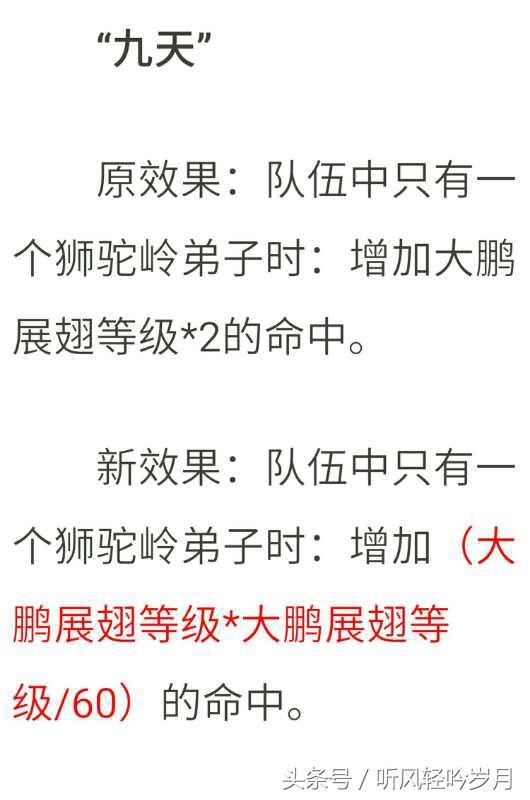 这次大改,对于狮驼岭来说,最关心的还是施法动画那个事情,不过看每周更新,似乎没有提到,如果是这样的,高级狮驼依旧没有龙宫吃香,低级狮驼,对了,低级没有狮驼。狮驼岭109的春天,也将在这次更新中荡然无存啦~~~~