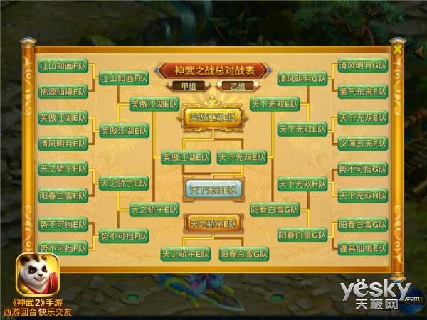 第四届“神武之战”在周六、周日展开了激烈角逐,各大服务器代表队为广大玩家奉献了一场场激动人心的比赛。最终甲组的天下无双A队和乙组的笑傲江湖E队分别获得了第四届神武之战的冠军。