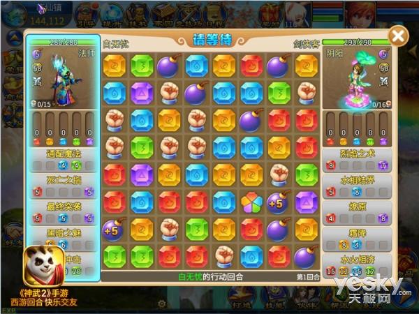新年新气象,玩出新花样,《神武2》手游已全服开放全新玩法智慧风暴。这是一种宝石对对碰的休闲玩法,但是却比对对碰有更多的乐趣:融入了门派特色,各大门派都拥有独特技能,还有各种各样的属性和魔法。在智慧风暴玩法中,三个以上相连的宝石可以消除,消除宝石能够获取魔法,使用技能需要消耗魔法,通过消除宝石和使用技能够给对方带来伤害,消灭对手获取胜利。没有激烈的打斗,只有益智的棋盘。门槛低而且上手易,一起来《神武2》手游比比眼力,让智慧激情碰撞!