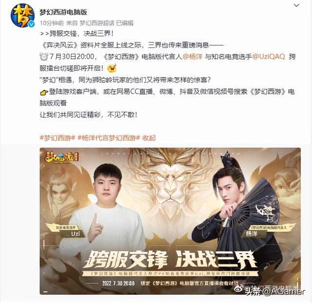 谈到《梦幻西游》电脑版里的诸多玩法,其中最让人血脉偾张的,莫过于是PK玩法了。我们知道梦幻西游的死忠玩家一直有很多,所以各类名人在梦幻西游里进行“跨界PK”其实并不是一件特别稀罕的事儿。这不,有两位业界大咖又准备在游戏中“大打出手”了,这二位,就是Uzi跟杨洋。