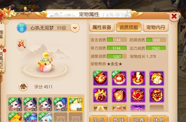 首先晒出的这只认证8技能的吉里吉里就让人挪不开眼,法力资质2562,体力资质5744,防御资质1090,都达到了勇武组主流水平,再加上1.270的超高成长值,整体属性几乎无可挑剔!