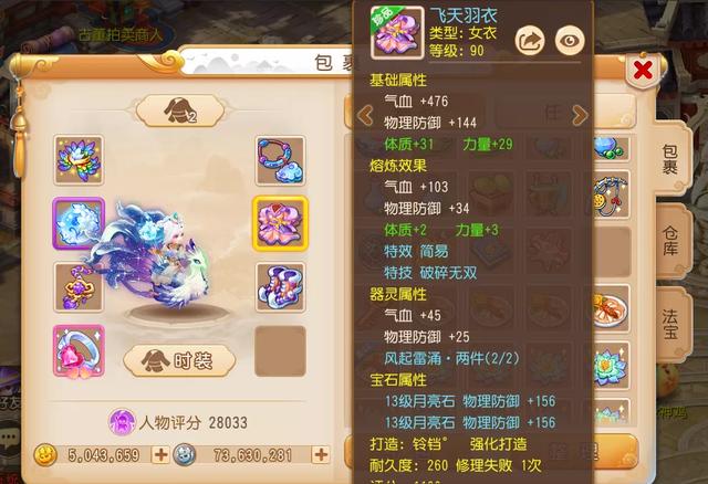 除了这三件装备以外,其余所搭配的也都是90级简易高属性装备,并且均打上了13段宝石,可以让角色的整体属性得到极大提升,无论面对任何玩法都能从容不迫。