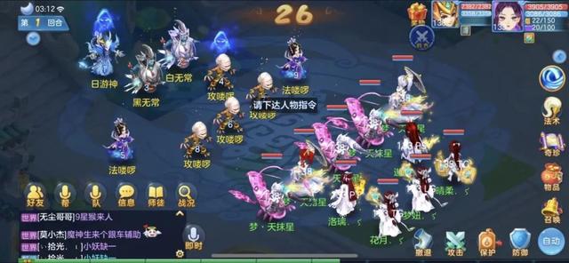 日游神的阵容包括:日游神、黑无常、白无常、攻喽啰x4、法喽啰x2。