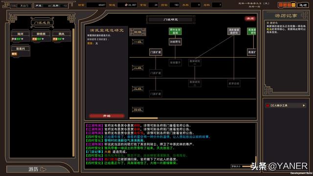 可以根据任务消息来了解本作的玩法,可以在门派界面进行门派建设,建造门派建筑,通过工作调整弟子的工作计划,工作优先级,以及需要在相应建筑添加工作任务,门派成员会自动进行工作。同时还可以修理受损的建筑。大部分建筑需要解锁相应研究后才能建设。