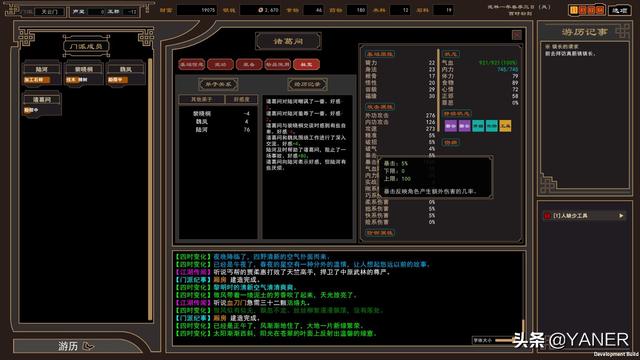 每个人物都会有不同的需求,并且可能会受伤需要养病,同时还有社交内容出现,通过社交可以查看弟子间的关系以及每个人的经历记录,门下弟子嘲讽掌门什么的,有点东西啊!