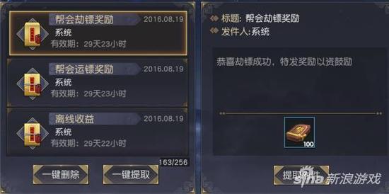 护送时间内,成功阻止镖车到达目的地或者镖车被摧毁,则劫镖成功,劫镖帮会可以获得10000点帮会资金,参与劫镖帮众可以获得100点帮会贡献,帮众个人奖励将以邮件形式发放