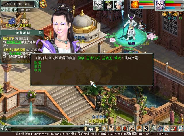 答题任务:楼主很怂,经常不知道系统出的是什么题,所以一般会打开世界看其他玩家是如何回答的,经验一般,做答题的时候带着寿与天齐,所以经验不准,应该是人物14W左右