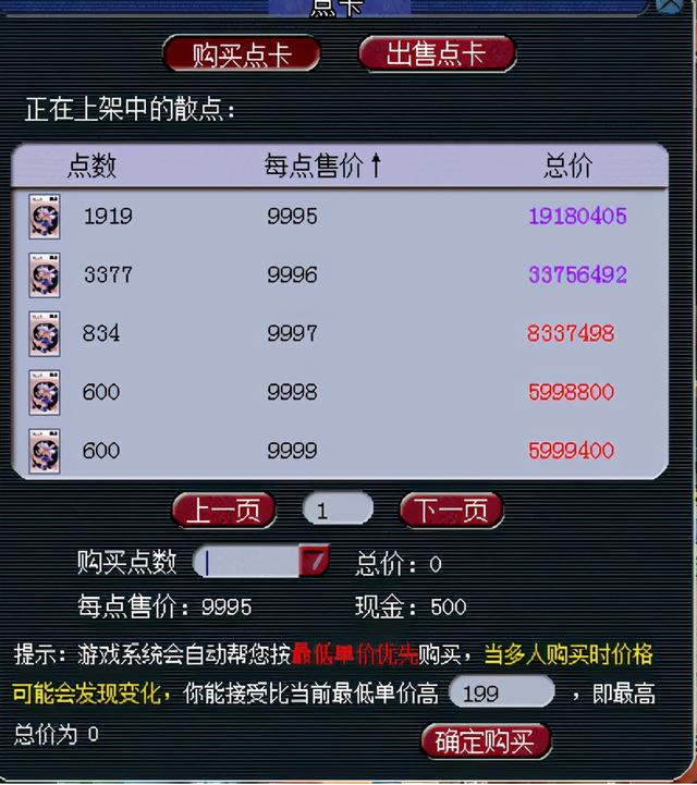 沂水雪山区内点卡售价为9995两/点,一点点卡售价不到10000两,这大概是全梦幻三年外服务器最低点卡寄售价格吧。希望用梦幻币购买点卡的玩家,请千万不要错过。