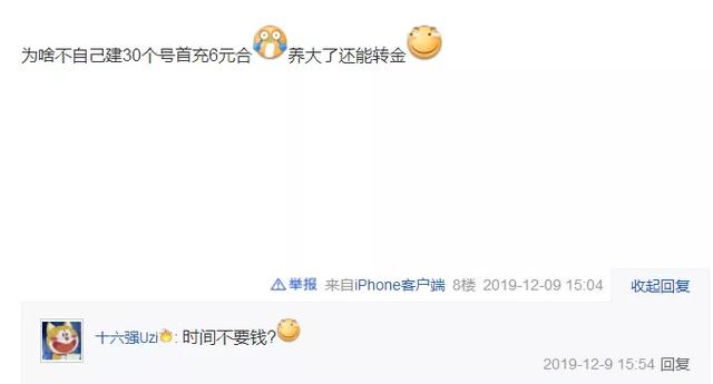 看到大佬为合宠买了30多的个号,就有玩家表示其实可以自己建号,然后首充6元就可以合了,但是也有玩家表示时间不是钱呀?建号太费时间了,大佬分分钟多少钱上下会花时间在建新号上面吗?
