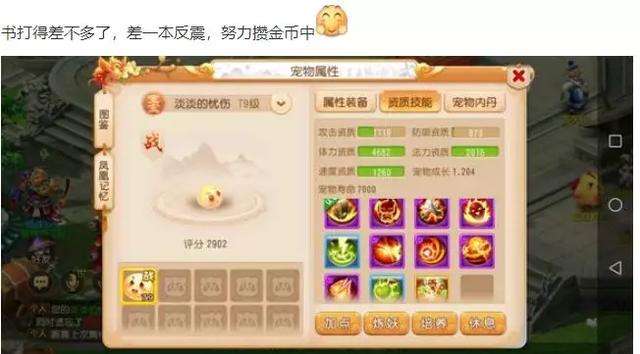 后来终于有玩家安奈不住上出了自己11技能泡泡的图片,这个泡泡资质比大佬合出的好不少,而且成长也是1.2了。说自己还差一个反震,正在努力攒钱中,大佬看到后心里着急呀,这么好的泡泡必须要全红呀,怎么能在上个反震就结束了。