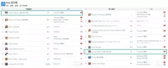 iOS全球榜单5.《魂斗罗:归来》表现惊人,全球iOS下载第一,收入第八