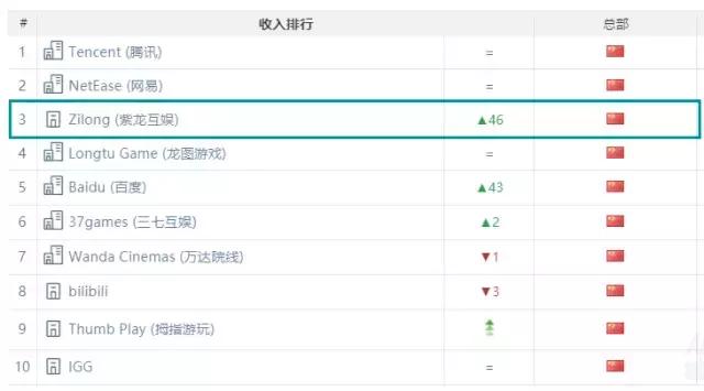 此外,凭借着爱奇艺发行的《楚乔传》,百度(AppAnnie榜单将爱奇艺游戏归于百度账号名下)也出现了名次的飙升,到了收入榜第5位。拇指游玩则凭借《还珠格格》的良好表现挤进榜单。Bilibili、IGG和三七互娱也均稳定在收入榜中。