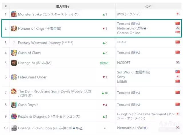 iOS&Google Play全球榜单1.《天龙八部手游》收入全球排名第七,《王者荣耀》略有下滑