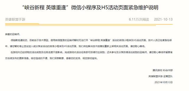 而小雷瞅见,英雄联盟手游昨晚就发布了公告,估计是找微信了解原因去了。