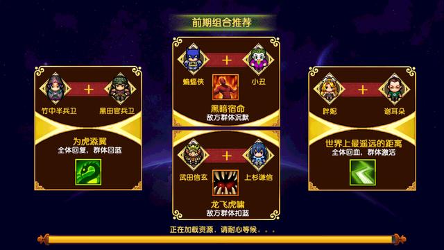 随着阵容的不同,卡牌之间还有多种多样的组合技,如下图初期较常见的2人组合技能。