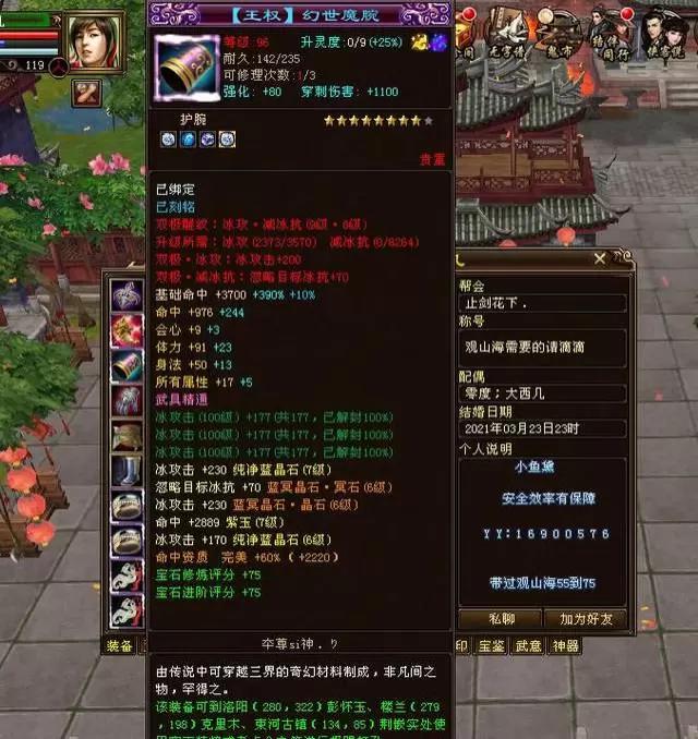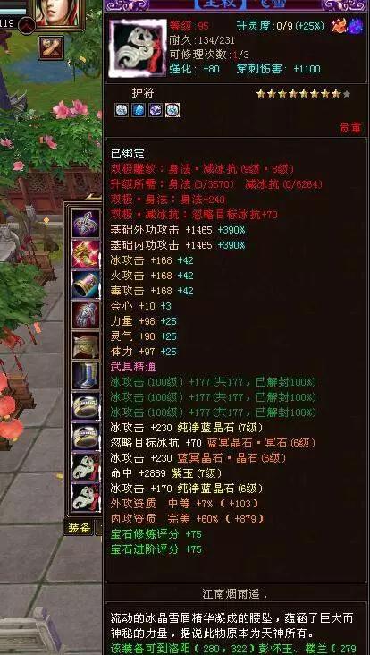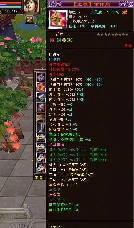 典型的二进阶选手,76宝石混搭,主要的体力、攻击雕纹都达到了10级,减冰抗雕纹8级,身法雕纹9级,双满鼎,78级真元混搭。