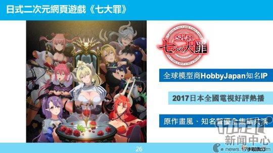 同时,宇峻奥汀透露,他们已经拿下HobbyJapan旗下《七宗罪》的版权,将会推出以动画剧情为基础的页游,主要面对台湾地区和日本市场。