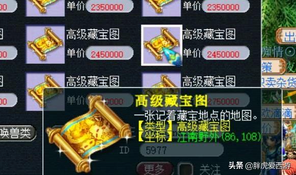 游戏中的老玩家都知道,高级宝图可以挖到高级魔兽要诀,有时候可以轻轻松松逆袭上千万的游戏币,不过一定要理智,因为挖多了高级宝图是一定亏钱的,今天胖虎看到建邺城有人在摆摊卖高级宝图,价格是市场价的一半,却无人问津!