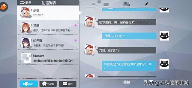 最有意思的就是这个聊天界面,仿佛真的在跟每一个妹子在私聊一般,对话也设计得十分有趣,如果选择了合适的回复,就能提高羁绊值,当成是文字游戏来玩也毫无违和感。