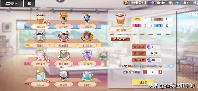既然是咖啡馆,自然少不了制作咖啡来招待客人,游戏中内置了丰富的咖啡种类,你需要制作这些咖啡,然后售卖给光临的客人们,以此赚取收益。而咖啡也会随着咖啡馆的升级而逐步解锁更多的品种。