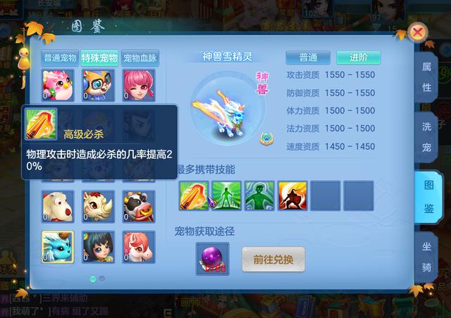 相信《神武3》手游的很多老玩家都有这样一个共识,那就是在兑换神兽的时候,最好可以选择到"神兽雪精灵"。主要是因为"神兽雪精灵"天生携带"高级必杀"和"高级神佑复生"这两个技能,同时高级感知和夜战也都是在日常任务中非常好用的技能,可以节省很多的培养花费,甚至带上一个"剑气四射"的护符就可以用来挂机和日常。从实用性上面来说,神兽雪精灵相较于其他的神兽,确实更好一些。