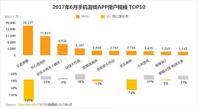 公司对于单一爆款产品的依赖,很多时候是基于无奈。但是这两家游戏公司,在爆款消消乐之后,继续主动开发同类游戏,也从侧面说明了消除游戏还有非常大的市场空间。据QuestMobile的数据报告,2016年Q1《开心消消乐》的MAU为5822万,而到了2017年Q2,MAU达到了11823万。而《宾果消消消》在2017年Q1的MAU为2868万,同比增长率为13.1%。