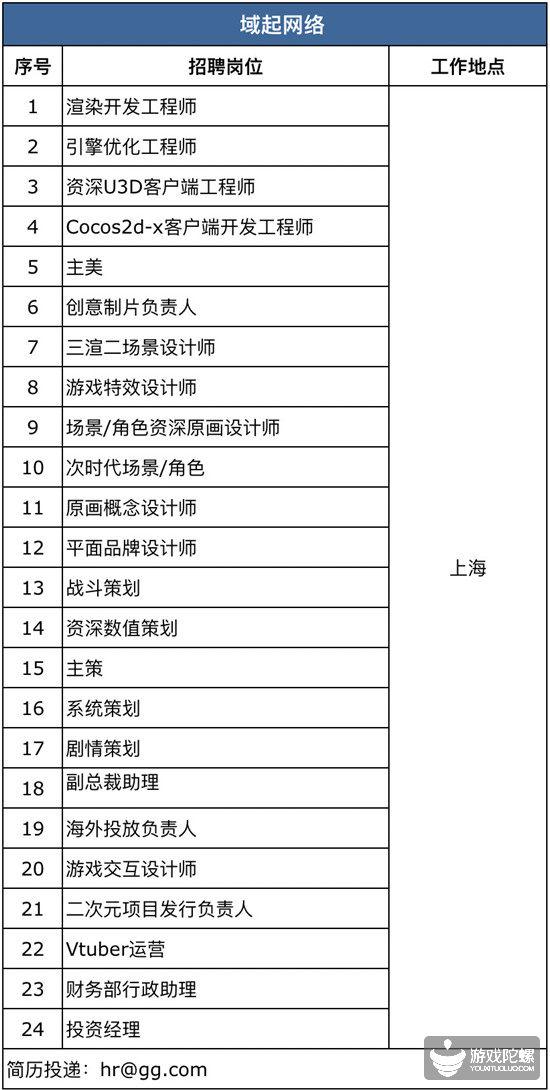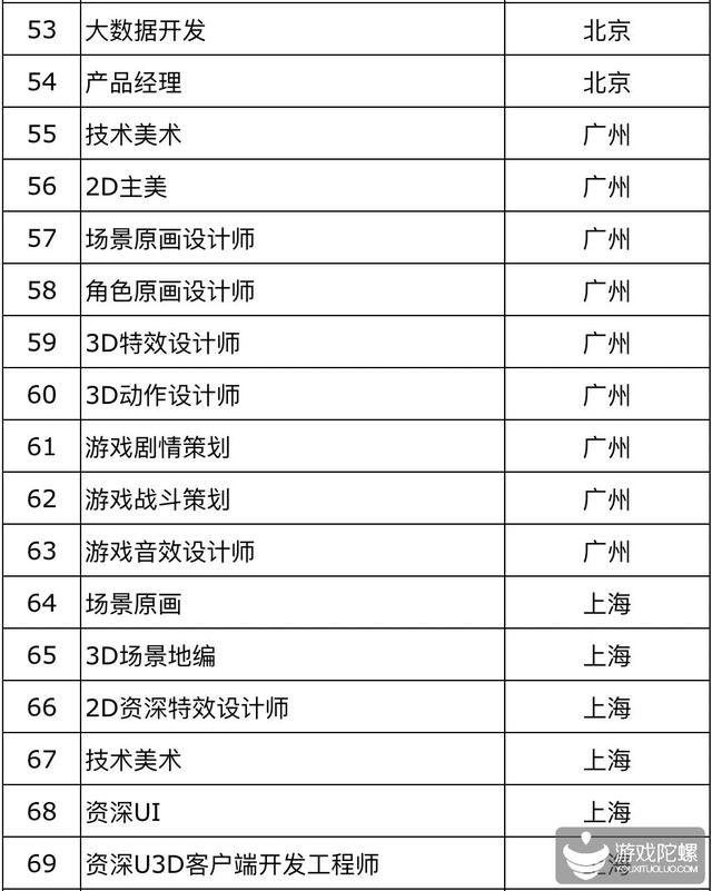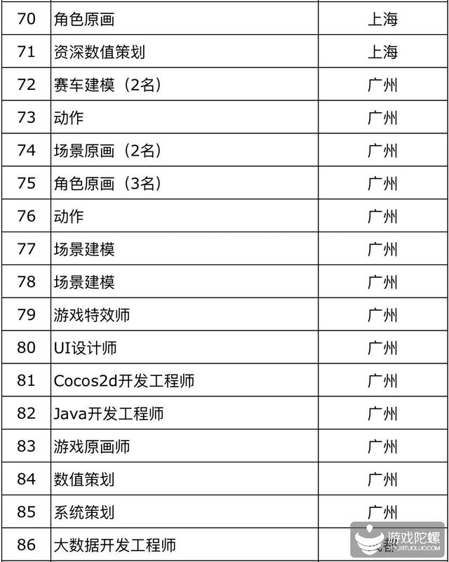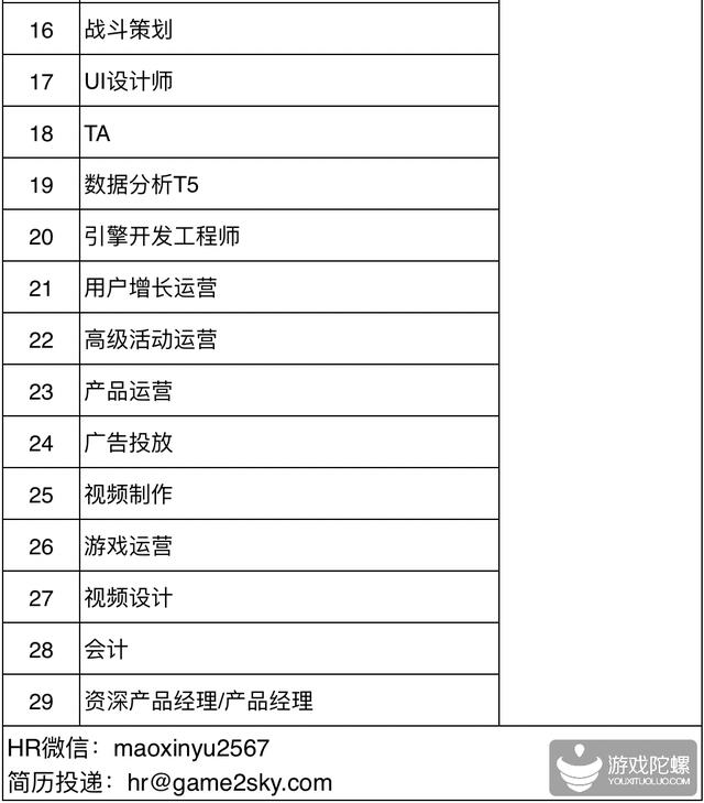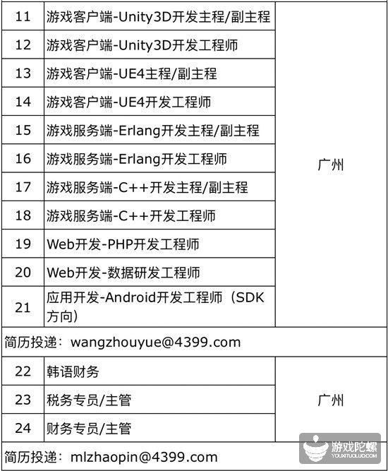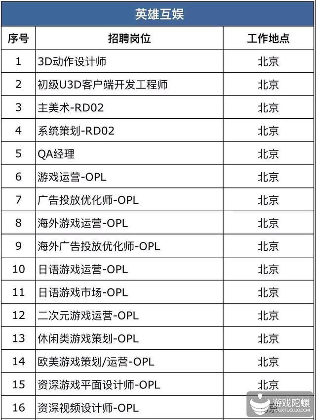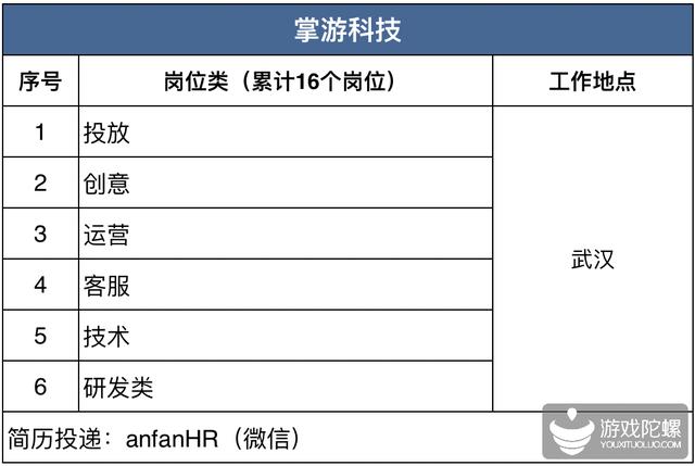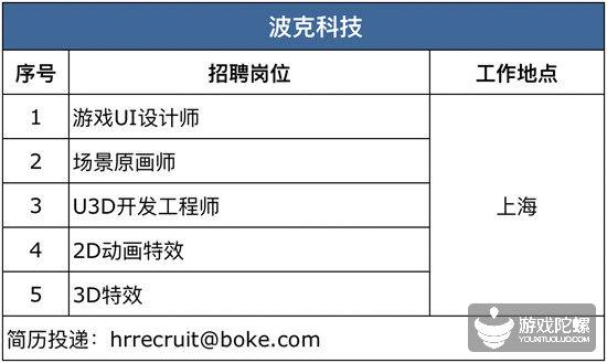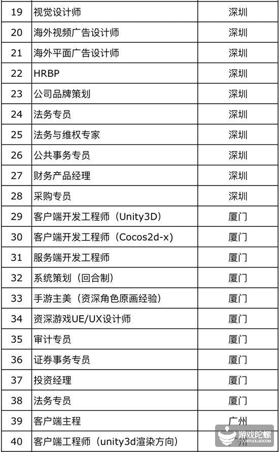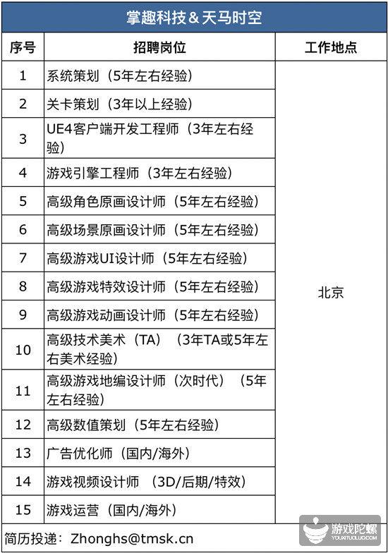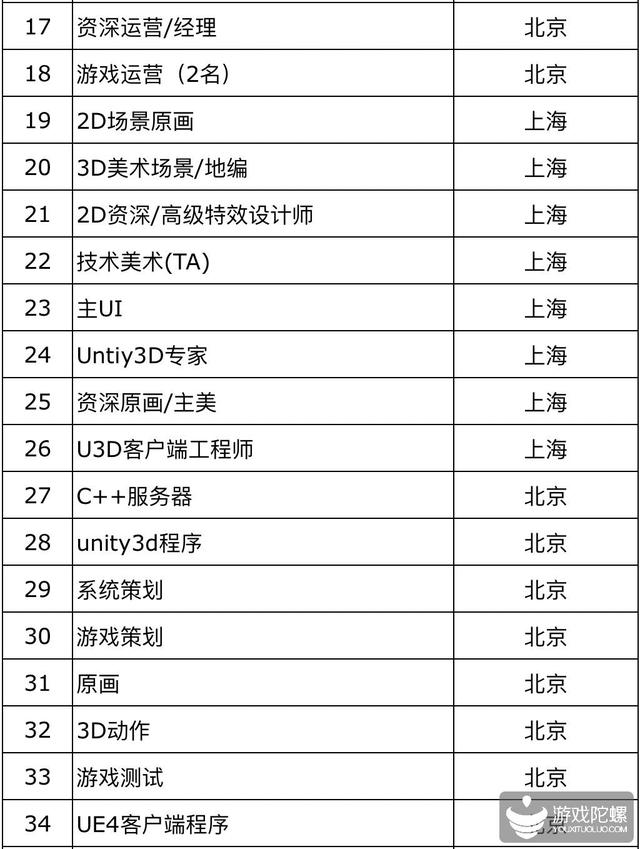 以下是游戏陀螺收集到各家游戏公司招聘需求: