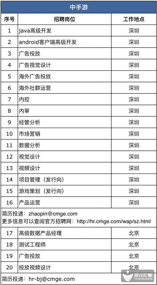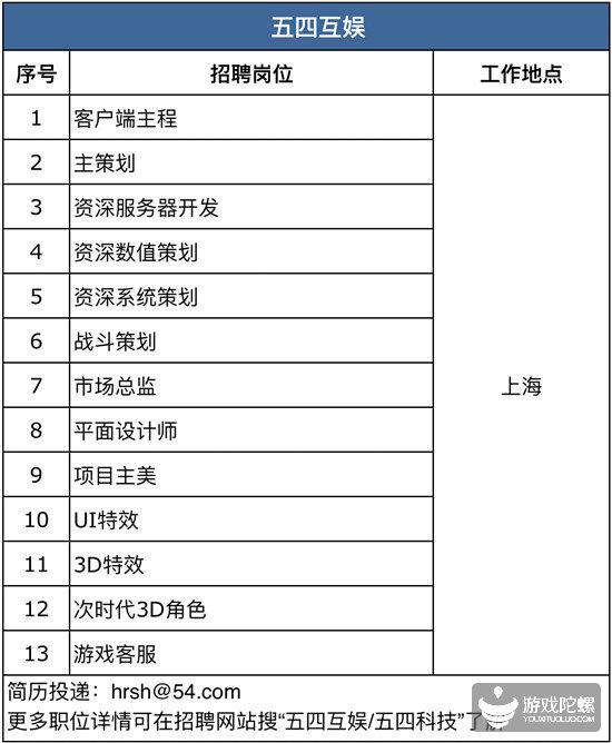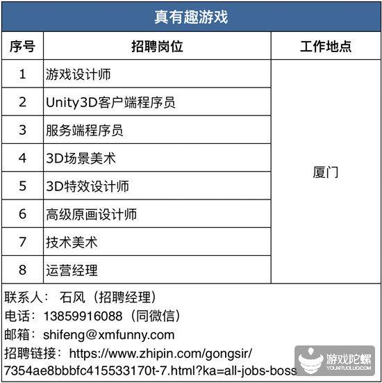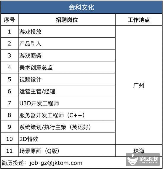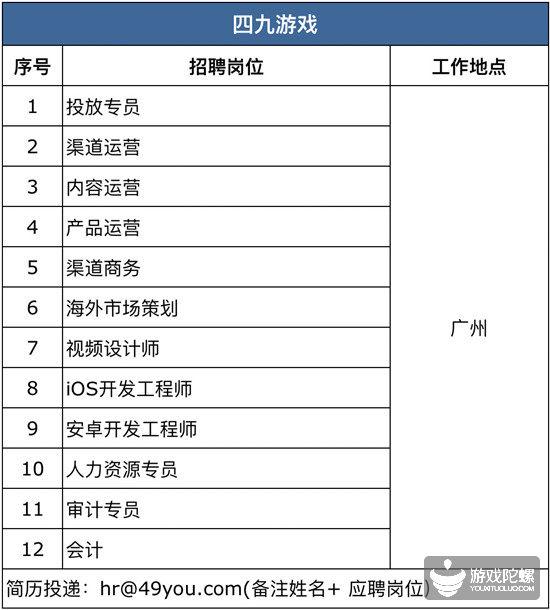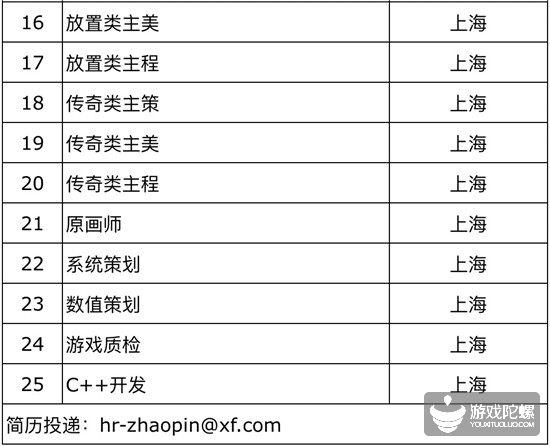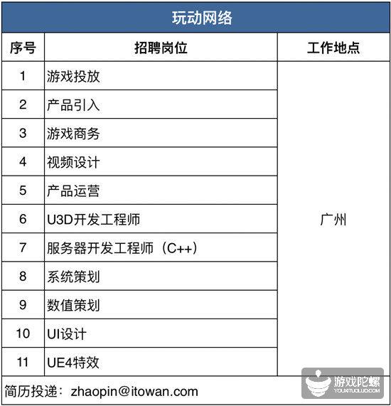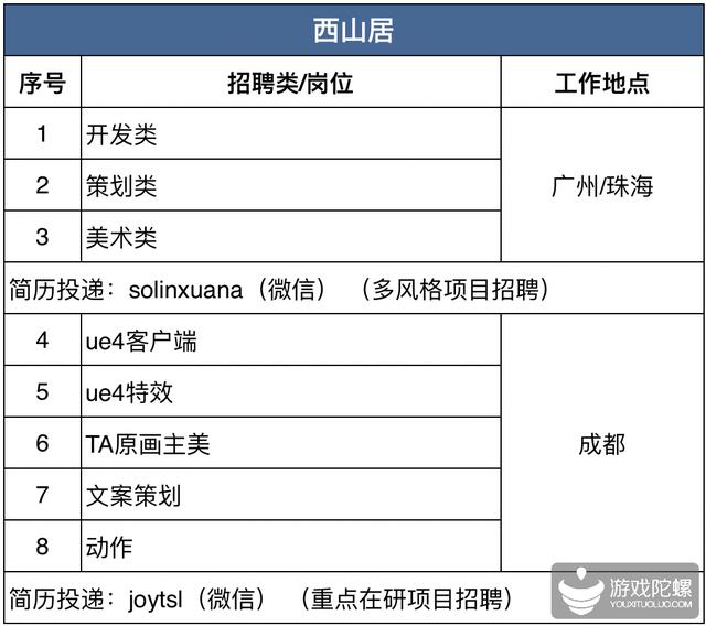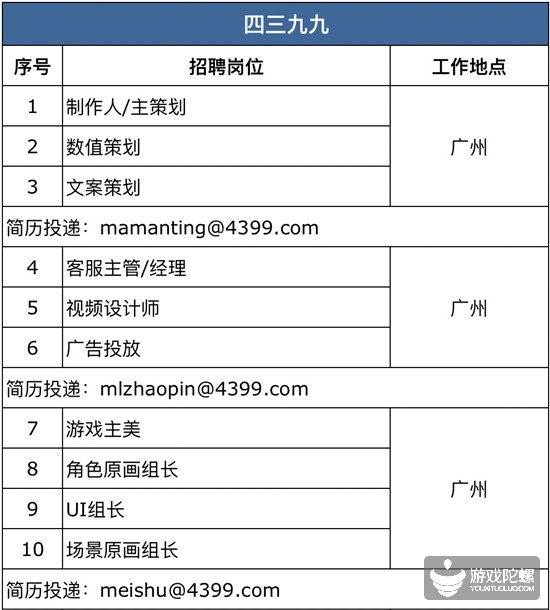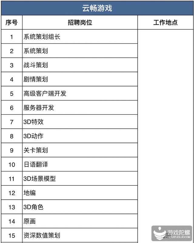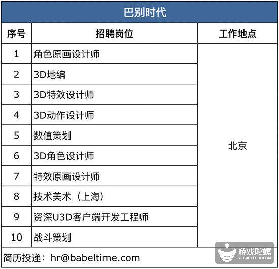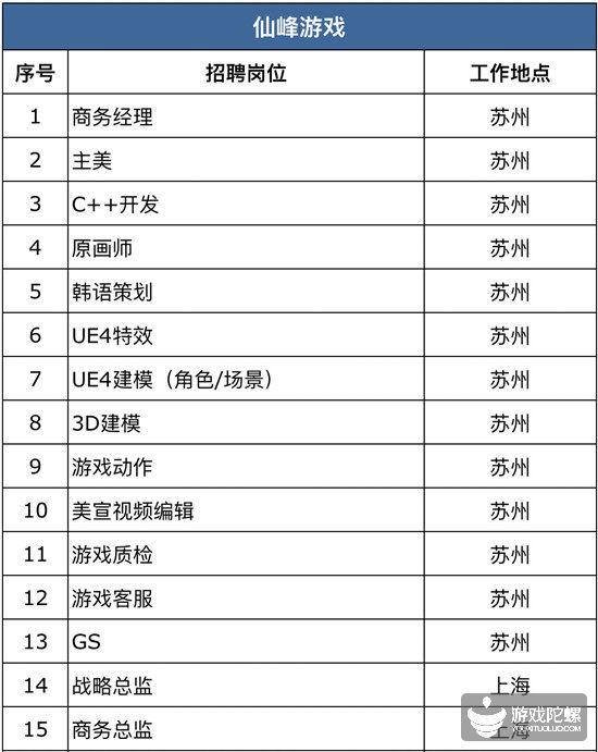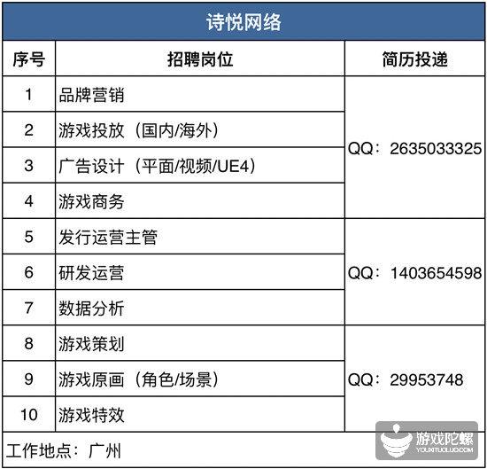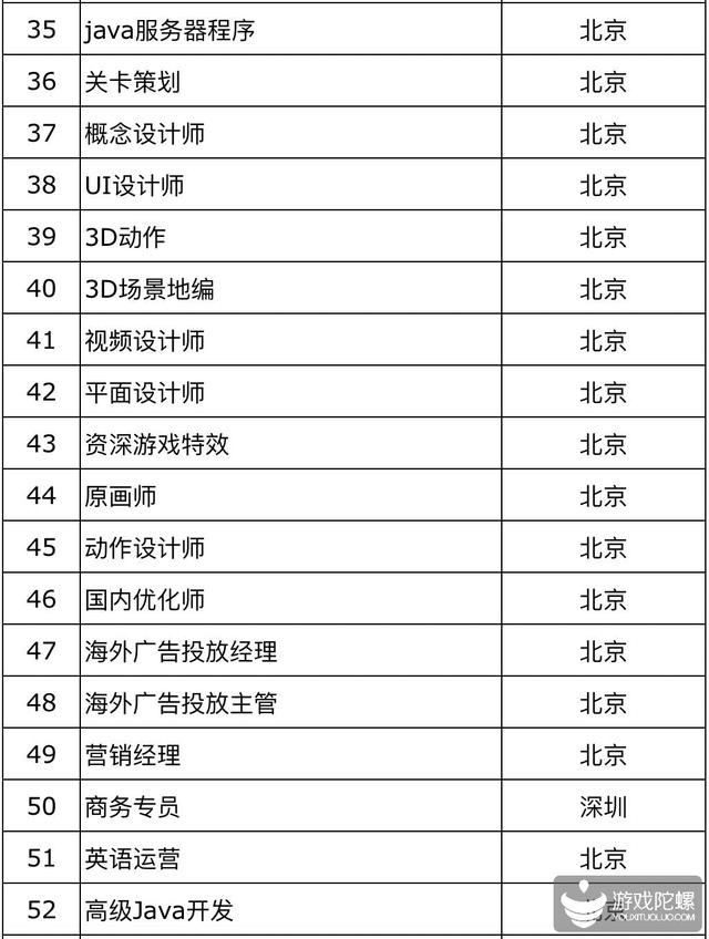 以下是游戏陀螺收集到各家游戏公司招聘需求: