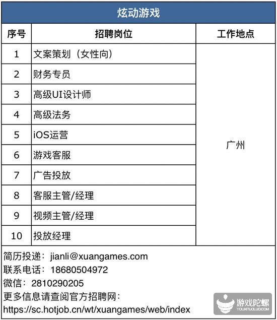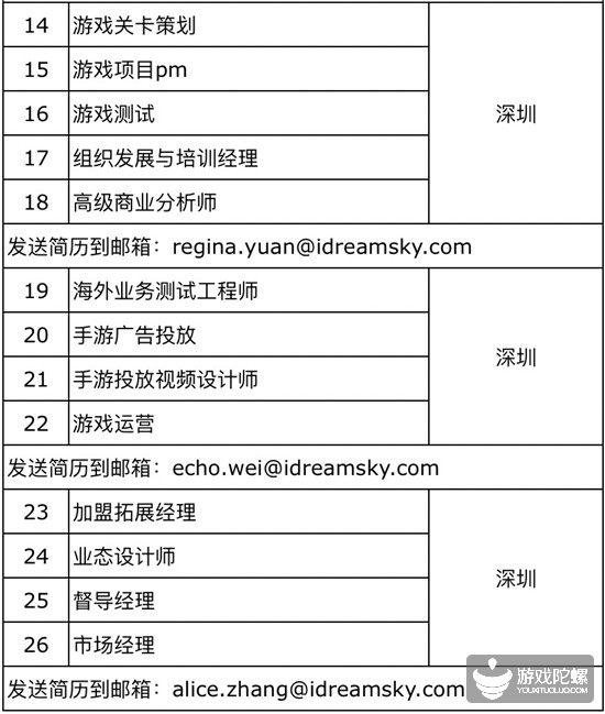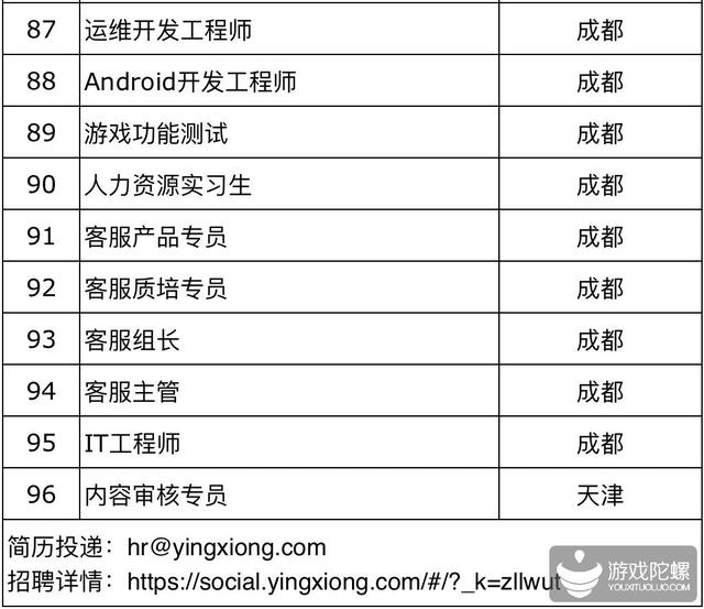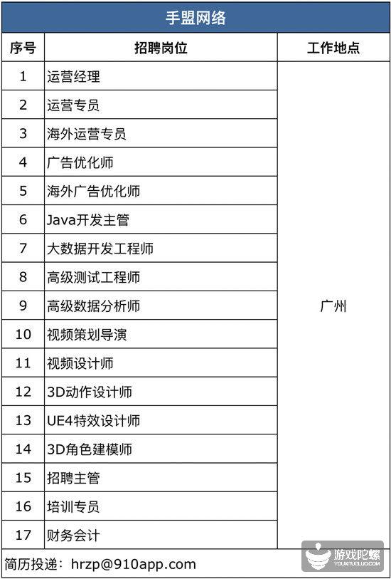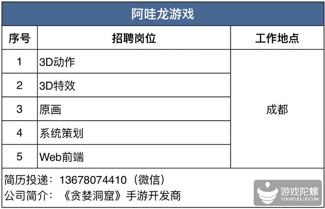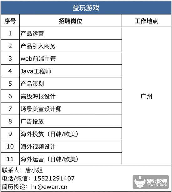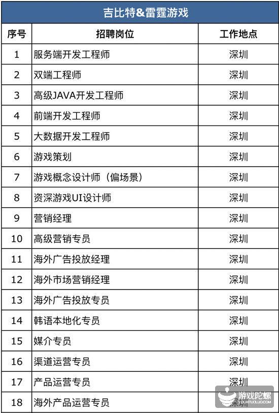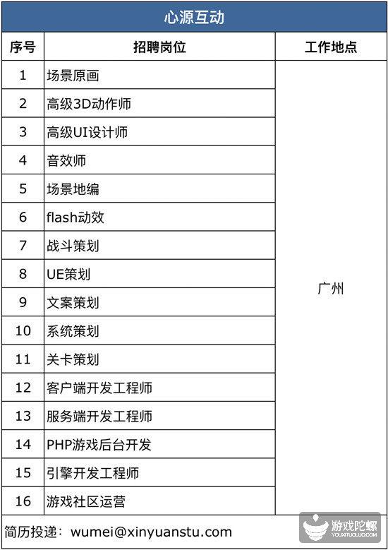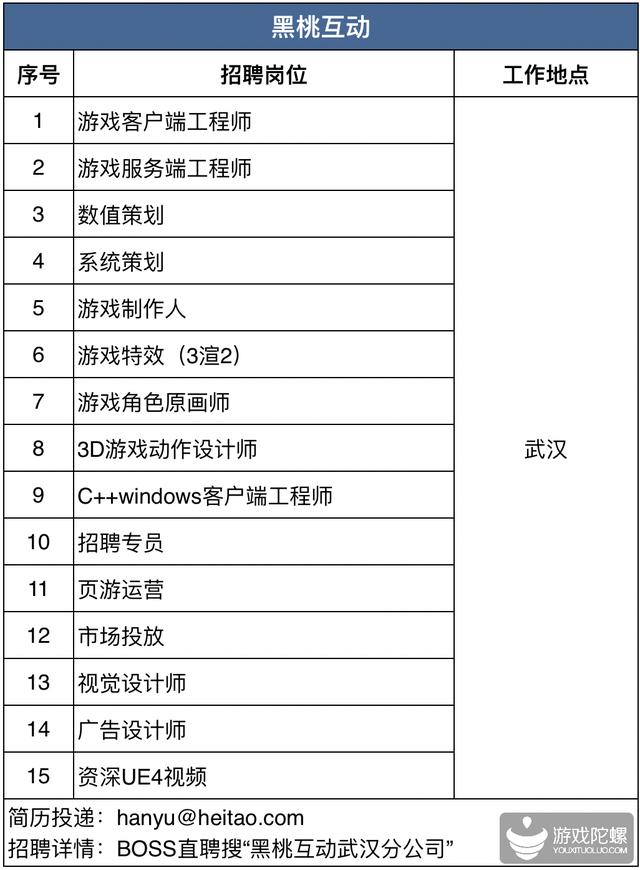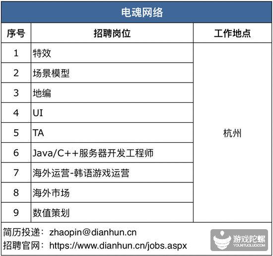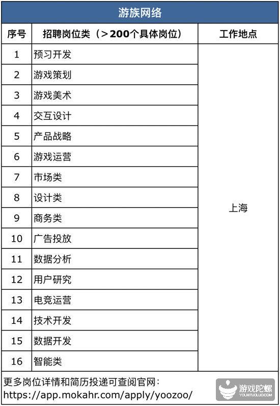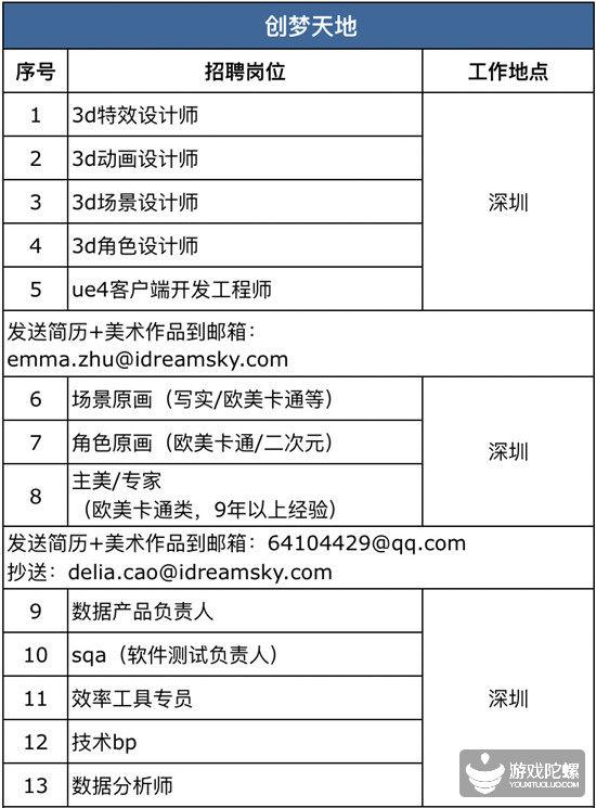 以下是游戏陀螺收集到各家游戏公司招聘需求: