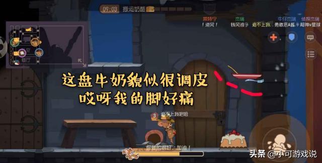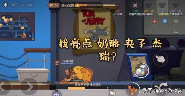 找亮点?投稿玩家说这张截图中有两个亮点,又是这种找茬“游戏”,一开始我还担心会找不到,接下来该我交作业了:第一个亮点在左上角的小地图中,场上剩余任务数只差三块奶酪,而小地图中却出现了五块奶酪;第二个亮点,杰瑞站在夹子上推奶酪,好的亮点已收集完毕,下面请看来自评论大佬的分析。
