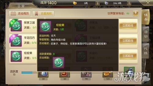 不知道大家有没有注意到日常活动中有一个叫做经验果的任务,这个可以说是任务也可以说不是任务,因为就算吃几个果子就可以了,不用你做,你每天吃几个经验果实就能获得经验。经验果有好几种,获得的方法是在家族果园中种植或者去拍卖行进行购买。