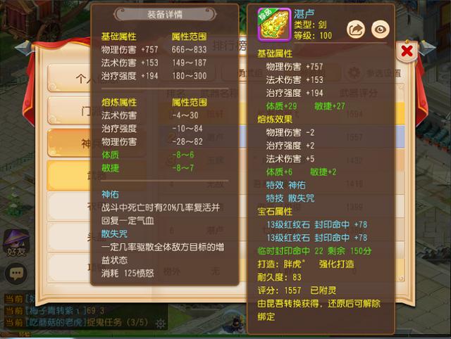这把武器熔满后,敏体双加高达64。至于神佑特效的重要性,经常观看武神坛比赛的朋友们一定深有感触吧,关键时刻的神佑,有时候真的可以左右一场比赛的结果。
