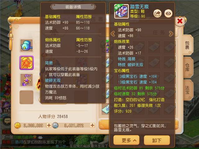 简易破碎无双踏雪无痕,加上13段宝石,让勇武物理保证伤害的同时,在争物理一速的时候更具优势,毕竟落后就要挨打。